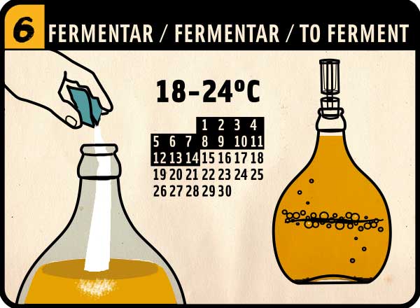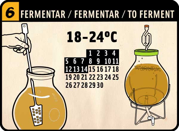 Al mosto de cerveza se le añade la levadura para que empiece la fermentación a temperatura ambiente. Durante los siguientes días la levadura creará CO2 y transformará los azúcares en alcohol
