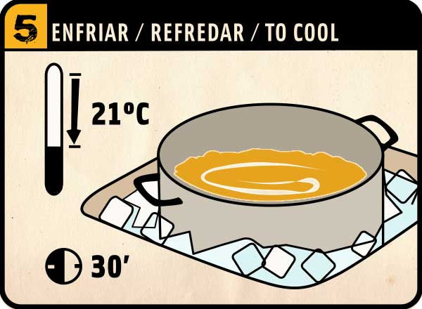 Es importante enfriar la temperatura del mosto cuanto antes para que continúe esterilizado y no surjan aromas desagradables. La temperatura debe descender de los 100ºC a los 24ºC